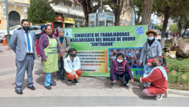 En la plaza 10 de febrero en la ciudad de Oruro, representantes del sindicato de Trabajadoras Asalariadas del hogar de…