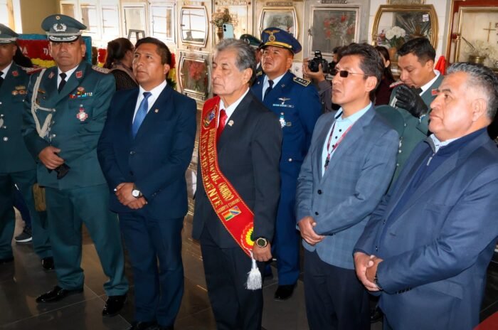 El alcalde de Oruro, Ing. Adhemar Wilcarani M., y el presidente del Concejo Municipal, Samuel Mendizábal, participaron en un acto de homenaje a los héroes de la Defensa de Calama. El evento incluyó el descubrimiento de la lápida del Gral. Rufino Carrasco y la entrega de ofrendas florales en el Mausoleo de Notables del Cementerio General de Oruro.