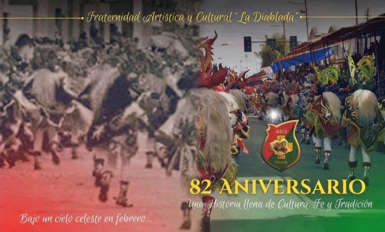 La Fraternidad Artística y Cultural «La Diablada» celebra 82 años de vida, arte y compromiso cultural. Fundada el 25 de febrero de 1944, esta institución ha sido pionera en la preservación y difusión del patrimonio cultural boliviano.