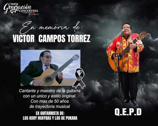 El folklore boliviano está de luto con la partida del Mtro. Víctor Campos Torres, un referente de la música tradicional boliviana. Con más de 50 años de trayectoria, su contribución a la cultura musical del país es incalculable.