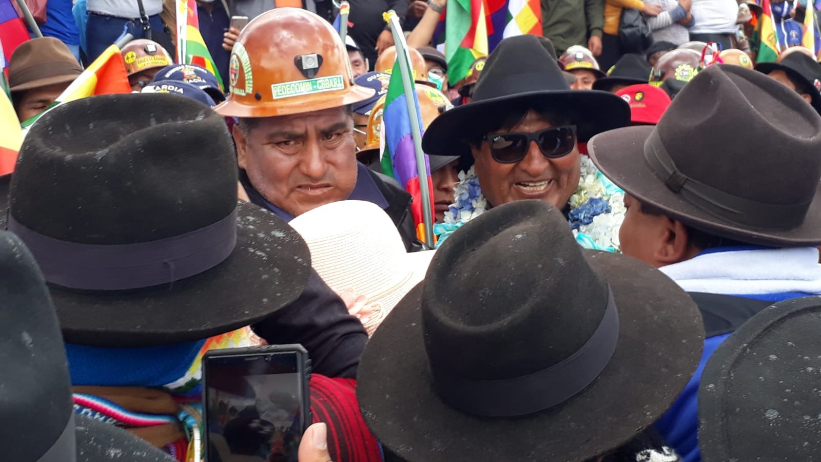 “Aquí estamos todos, oriente, occidente, el norte, el sur del país, porque todos estamos conscientes, hermanas y hermanos, de que Bolivia necesita trabajar, necesita salir de la crisis, necesita avanzar y hay gente que no quiere que avancemos, hay gente que quiere que nos estanquemos porque responde no sólo a sus intereses personales de grupos, sino también a intereses internacionales”, sostuvo.