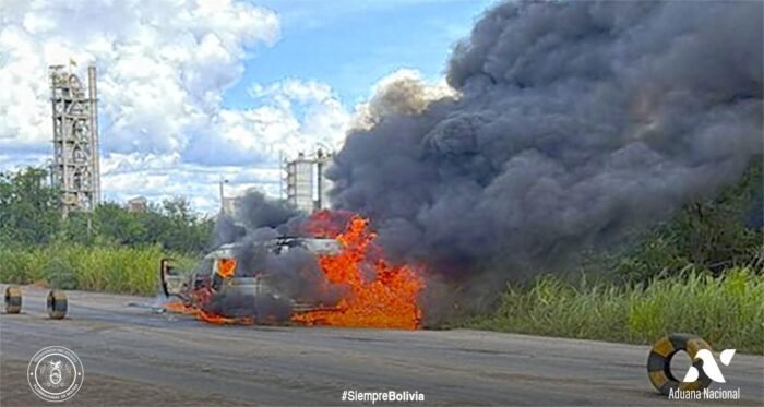 La Aduana Nacional reportó un violento incidente registrado en el punto de inspección aduanera Yacuses, Santa Cruz, durante un operativo contra el contrabando. Un minibús evadió el control, poniendo en riesgo a tres efectivos del Comando Estratégico Operacional y a un técnico del PIA. El vehículo fue interceptado a cuatro kilómetros por personal del Grupo de Reacción Inmediata Aduanera y miembros del CEO.