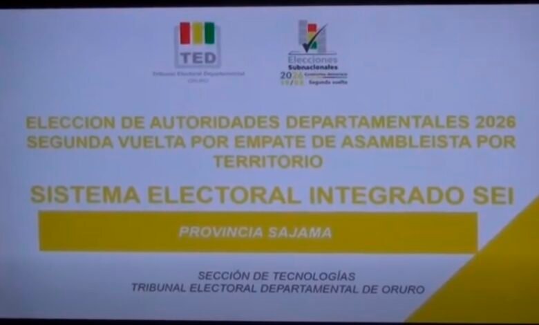 La Sala Plena del Tribunal Electoral Departamental (TED) de Oruro ha resuelto convocar a una segunda vuelta para definir la elección del asambleísta territorial de la provincia Sajama.